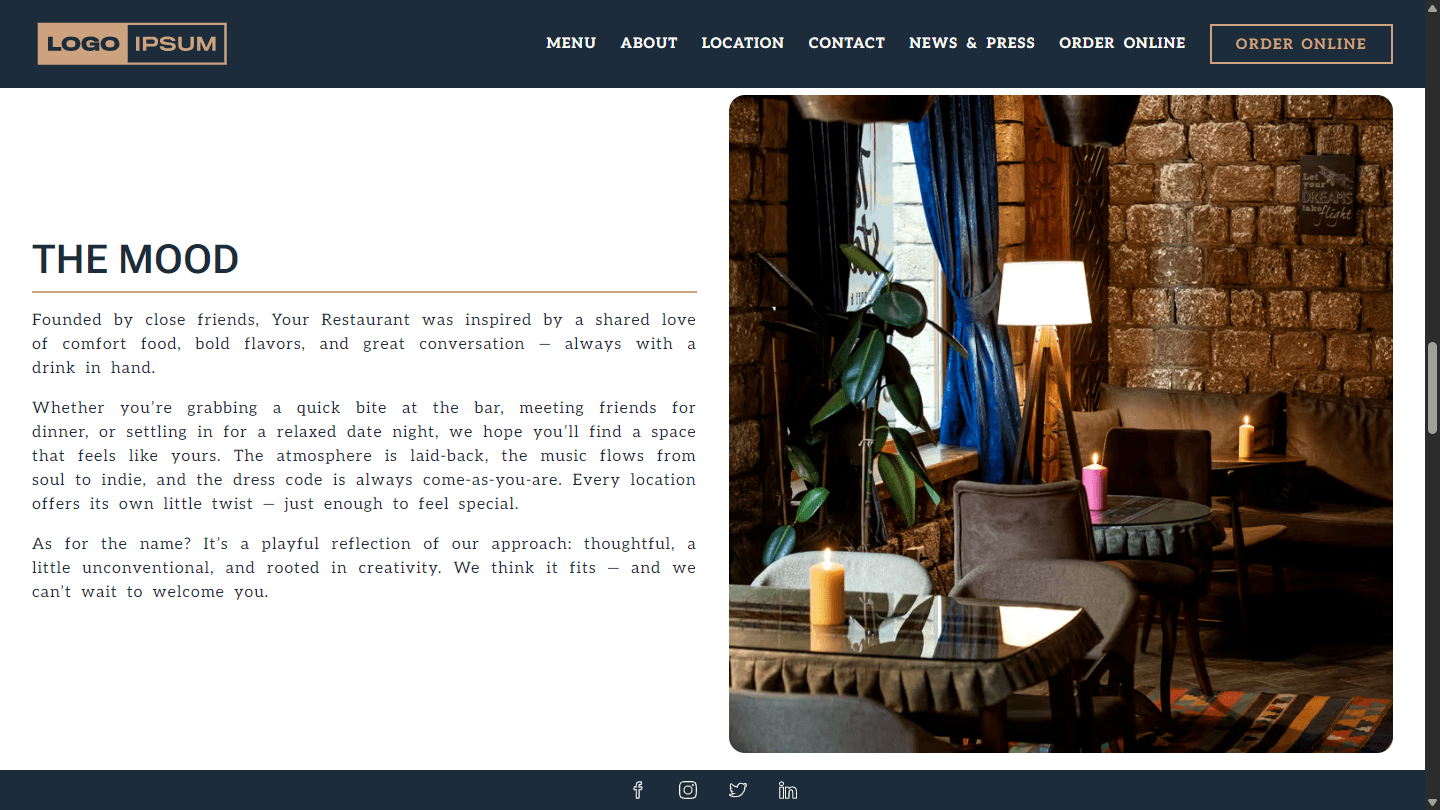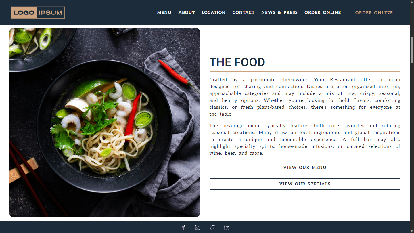 You can personalize your template with your brand colors, typography, logo, images, copy, links, and business details (menu URLs, reservation links, hours, address, and more).